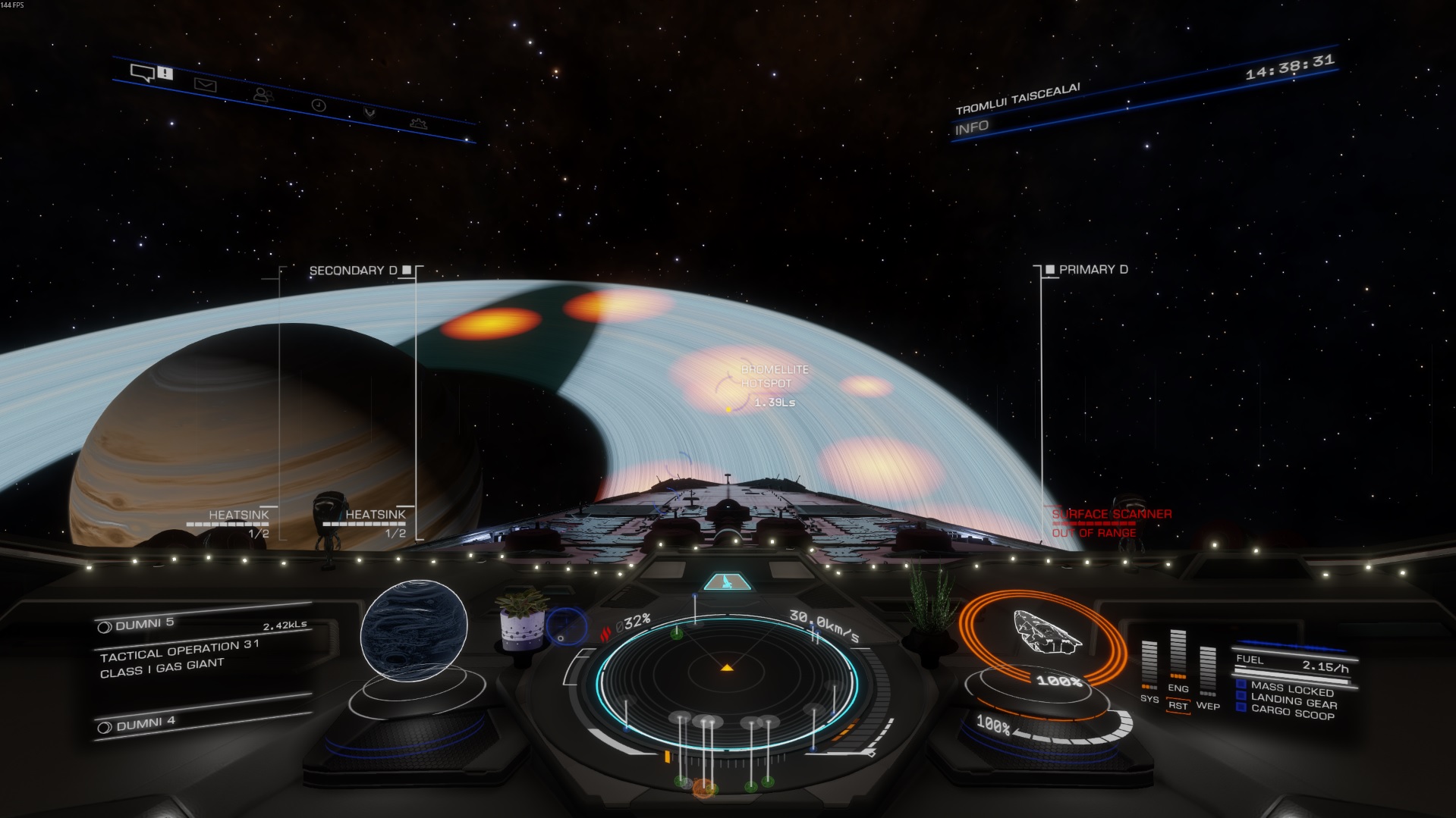 Double overlap of Bromelite hotspots in the ring of Dumni 4 gas giant, 1052ls from the main sequence star.